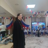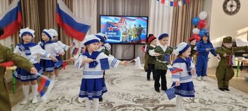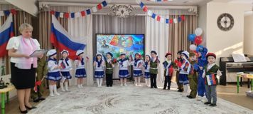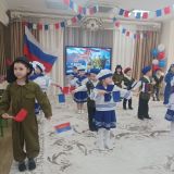 В начале мероприятия все присутствующие дети и родители исполнили Гимн Российской Федерации. Духовник детского сада отец Алексий поздравил всех с этим замечательным праздником. Дети рассказывали стихи, пели песни про Родину, отгадывали загадки на военную тему, соревновались, танцевали зажигательный морской танец «Яблочко»! Для малышей группы «Непоседы» было проведено мероприятие, которое прошло в форме спортивного досуга с элементами игровой деятельности