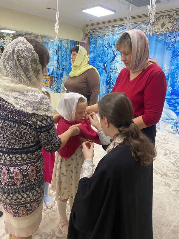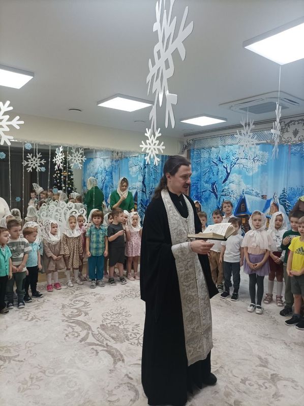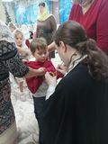 Детей причастил духовник детского сада иерей Алексий Глотов. Всего приняли участие в Таинстве Евхаристии 84 ребенка.