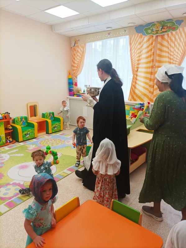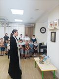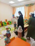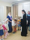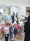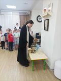 В завершение встречи батюшка окропил воспитанников, сотрудников детского сада и все помещения учреждения крещенской водой, пожелав всем крепкого здоровья, мира, радости и Божьего благословения.